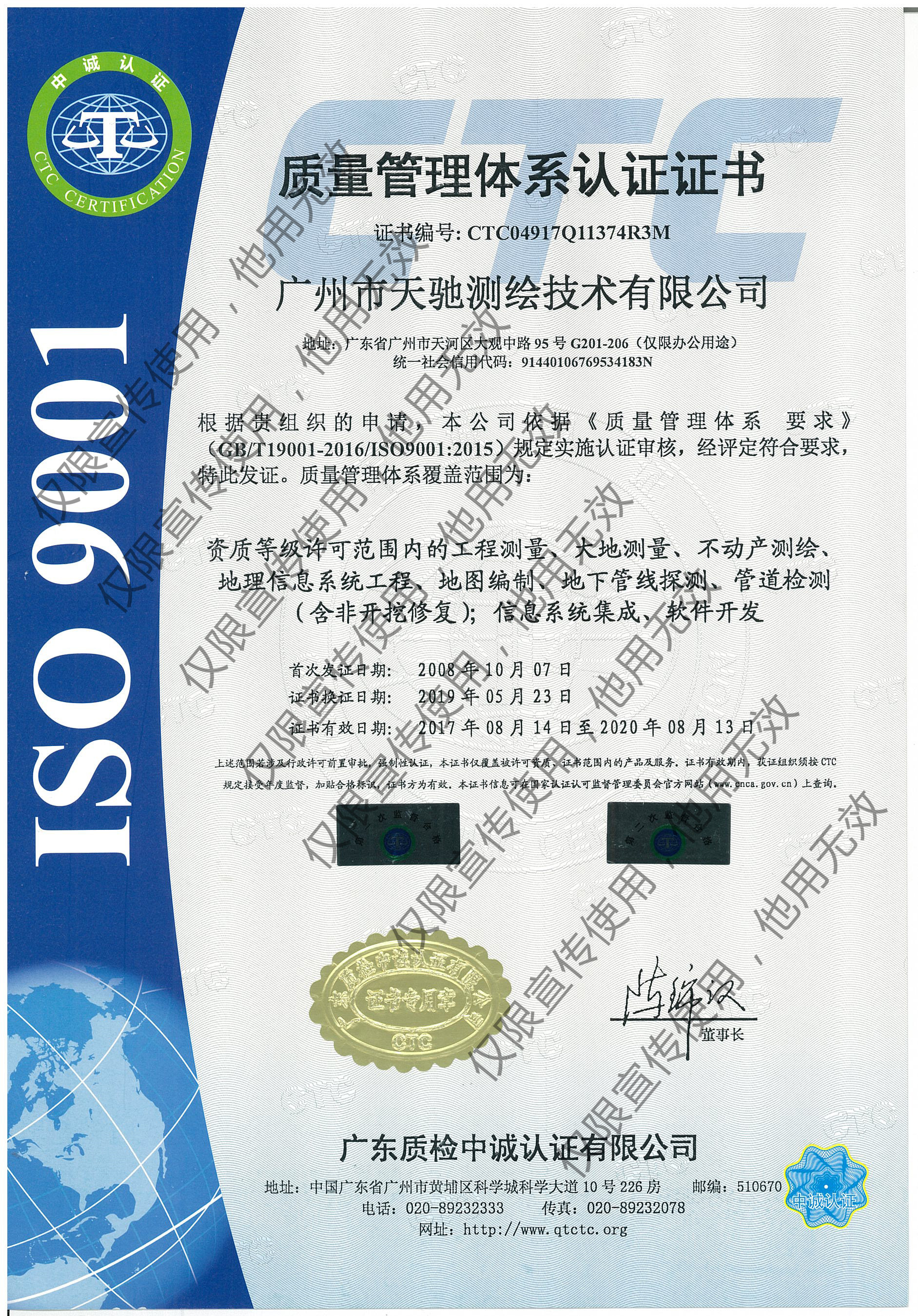 廣東天馳智慧管網有限公司(以下簡稱“天馳”),是一家為智慧城市建設而生的高新技術企業,2004年成立,業務范圍涵蓋:測繪服務、管線探測、勘測物探、咨詢設計、信息化服務、排水服務等。現已發展為華南地區地下管線行業的領軍企業。